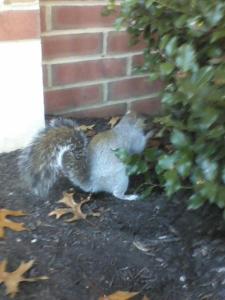 The squirrels on YCP campus are so funny to watch. One came right up to me today while I was sitting outside the library. I threw him a pineapple chunk which he turned his nose up at. The only other thing I had was a bag of mini chocolate chip cookies. He snatched up the crumbs I tossed him, holding them in his tiny little paws. He was just so cute and next thing I know he was sitting on the ground beside my foot waiting for more. I reached down with a piece and he took it out of my fingers with his teeth. Now that entertaining to me. I broke a cookie in half and held it out to him. With enthusiasm I was not prepared for, he leaped onto my hand and snatched that delicious morsel with his teeth.
