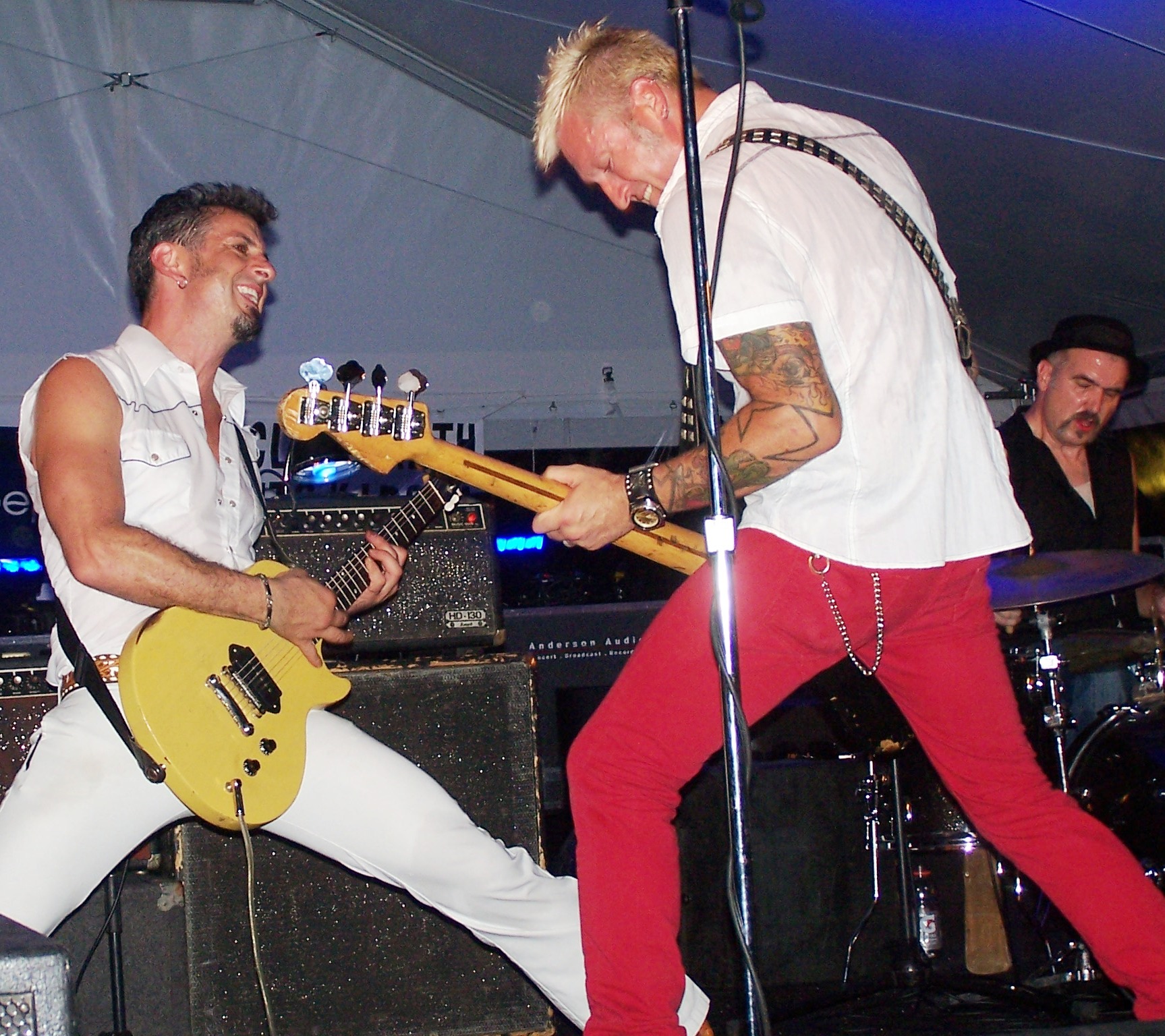 Gibb and Mead worked the stage and the crowd encouraging dancing and singing. Troup was stationary behind the drum kit but did twirl his sticks and toss them in the air delighting the crowd. The Martini Bros. style is a mix of punk, rock-a-billy and classic rock and roll. They dressed the part in skinny jeans, collared shirts and cowboy boots complimented by multiple tattoos and piercings.