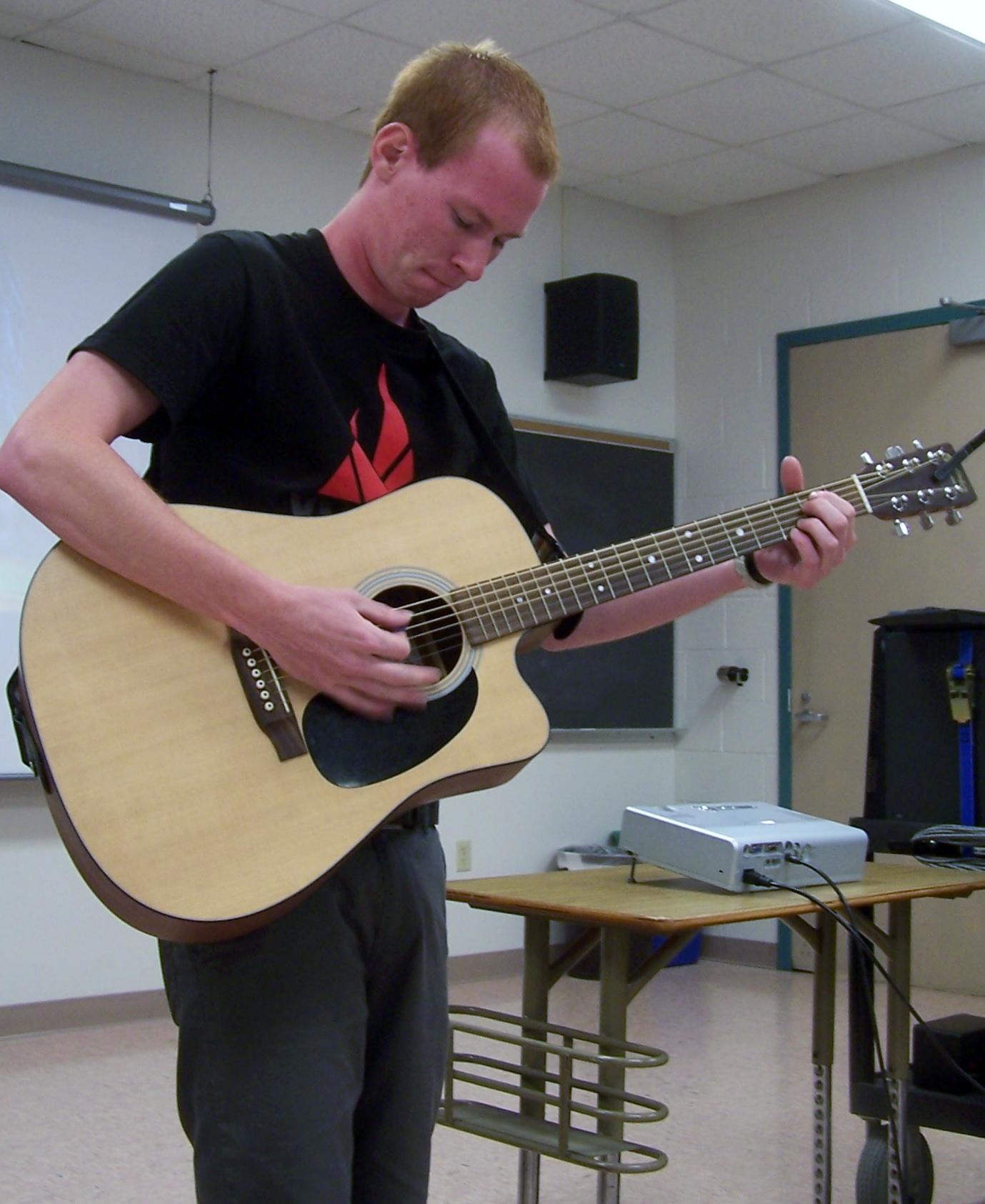 Ryan Hahn and Kevin Kroushour, both juniors, performed in The History of Rock & Roll class at York College of PA, introducing us to the acoustic and electric guitars.