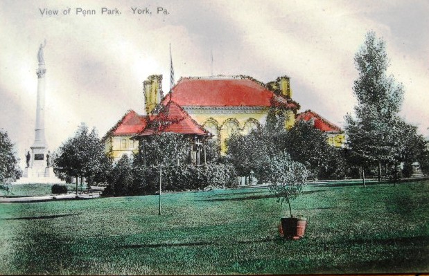 “This blocky building in York, Pa.’s, Penn Park is weather beaten or, well, just beaten up. But when the Penn-Coates Memorial appeared on the cover of its dedication brochure on Sept. 25, 1926, it was a welcome sight. “The Common … was secured by gift from John Penn and John R. Coates, who, by their deed dated June 11, 1816 granted … the inhabitants of the Borough of York a certain tract or lot of land containing about 20 acres … and now used as a public common,” according to the dedication pamphlet. John Penn was the last proprietary governor of Pennsylvania and John Coates was his agent.”