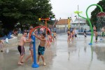We arrived at 1 PM and easily found parking behind Kaltreider Library. Tesla and I changed our clothes in the bathroom. The bathrooms were clean in my opinion. The tile floor was wet and had some dirt making its way to the drain, completely understandable in a newly created water park with grass just beginning to grow. There were some stray pieces of toilet paper on the floor. That single ply stuff that tends to melt as soon as wet hands touch it. Most important, the toilets, sinks, water fountains, and baby changing areas were clean.