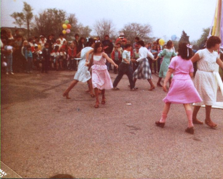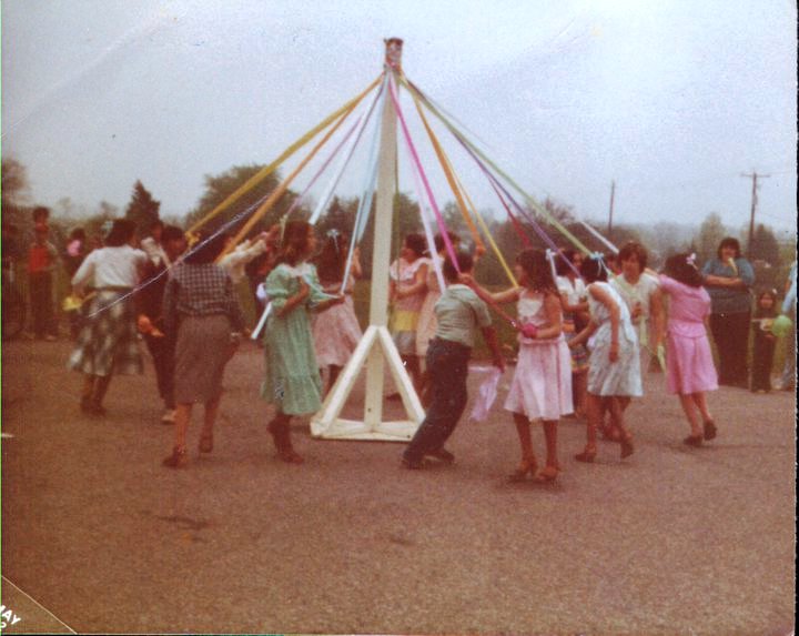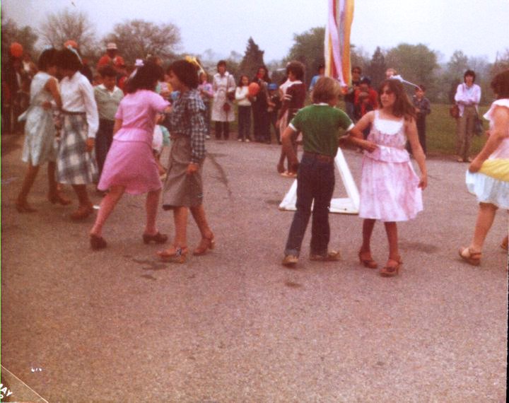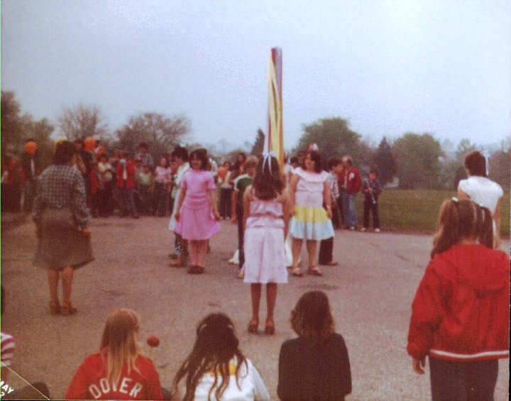 Here are some pictures from the Maypole dance in Dover when I was about 11 years old. In the pictures from 1982 are my friends Kym Guss, Holly Beecher, Travis Faulkner, Jill Coleman, and Michelle Knaub. I have on a pink shirt, pink skirt, pink bow, and pink socks. I guess I always liked the color pink.
