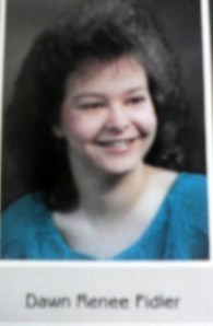 So my first victim from school is Dawn Fidler who is married to Scott Wolf. Dawn had this to say in my yearbook:
