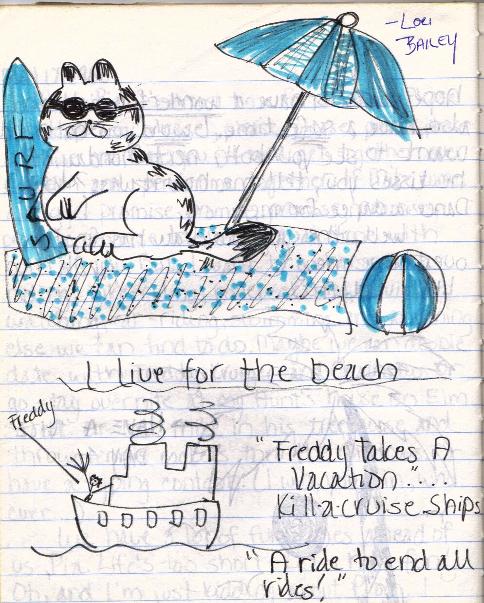 Lori also wrote and drew in my journals from Creative Writing class with Mrs. Ney. Here is some of Lori’s adorable sketches: